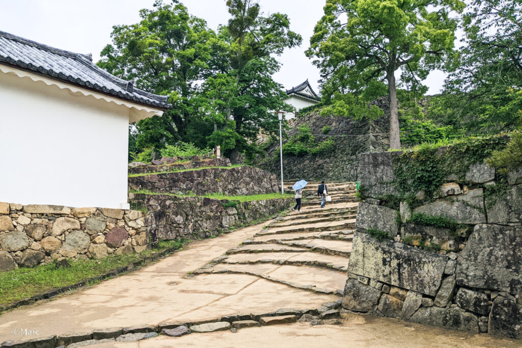 天守にたどり着くまでの階段はとても急でハード。雨の日は特に気をつけましょう。