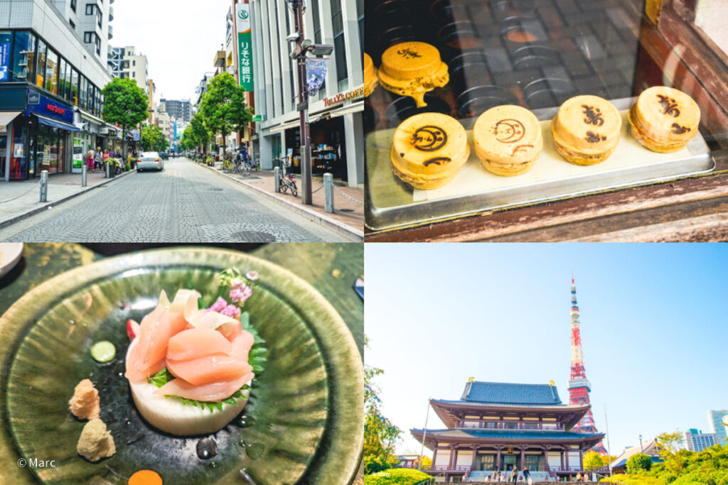 近くある麻布十番商店街では、隠れ家的レストランでの食事や、江戸情緒あふれるスイーツが楽しめます。
