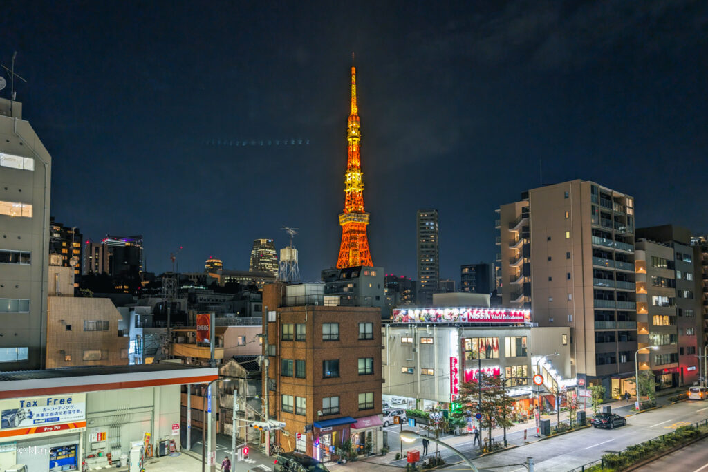 客室のバルコニーから見える東京タワーは、徒歩で約15~20分程の距離です。