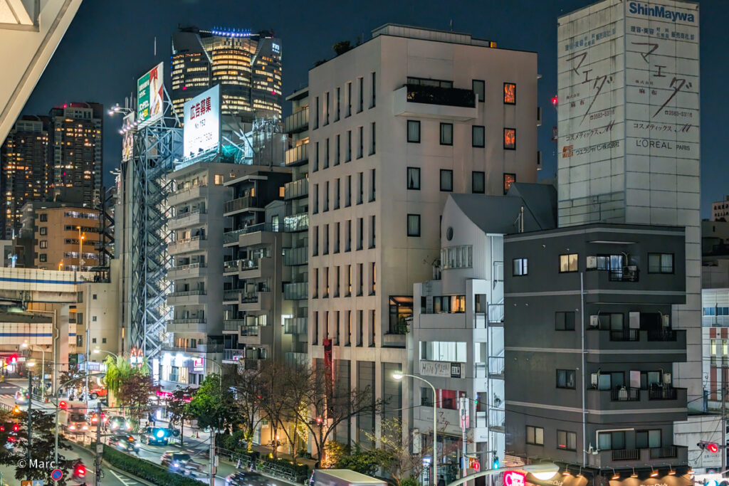 左手の方向には麻布十番の街並みと六本木ヒルズ。都会らしい光景です。