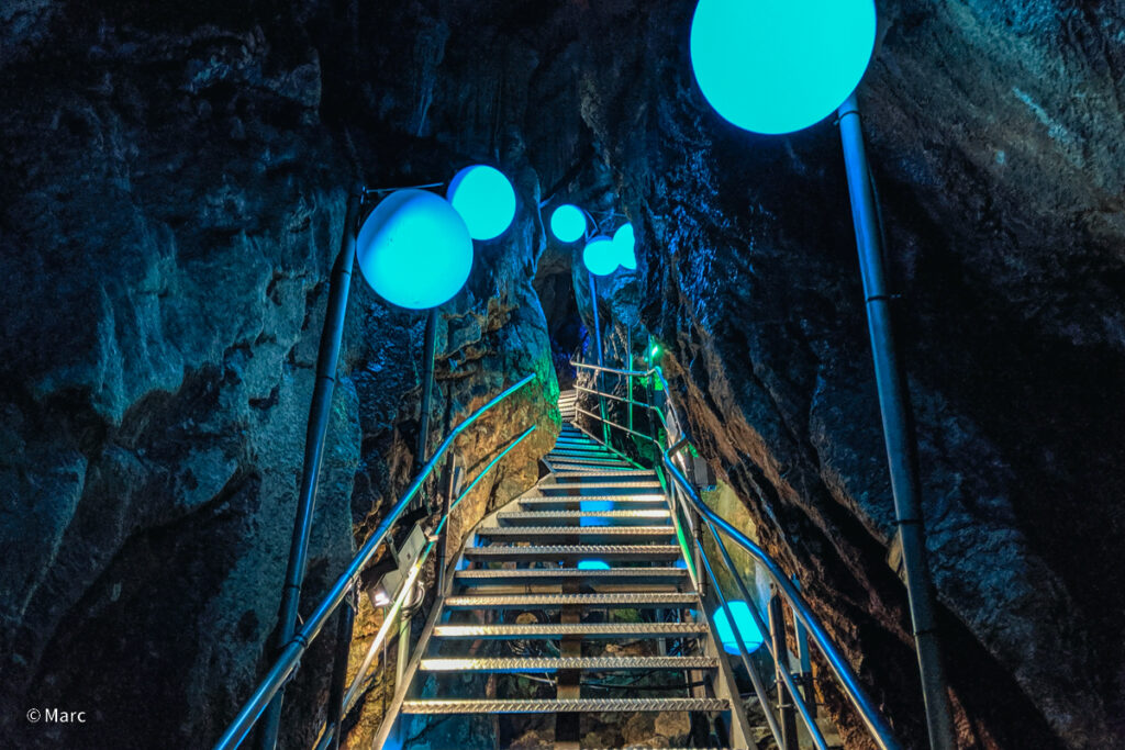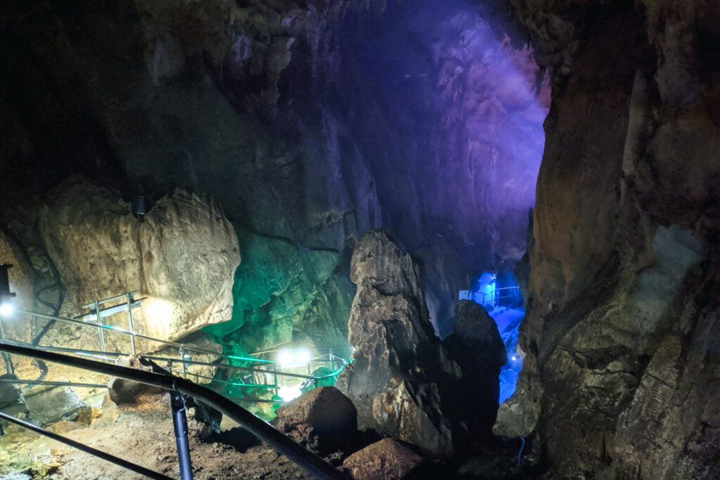 約1キロの観光コースを回りました。途中狭い、低い箇所があるので少し大柄な人はしんどいと思います。水脈が豊富なので至る所に水が流れていたり中にも滝があったり濡れているので靴もヒールやサンダルだと危ないと思います。