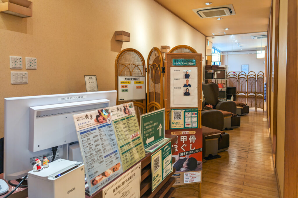リラクゼーションはボディケア、ヘッドケア、ハンドケア、足底療法が20分2,300円~利用可能です。