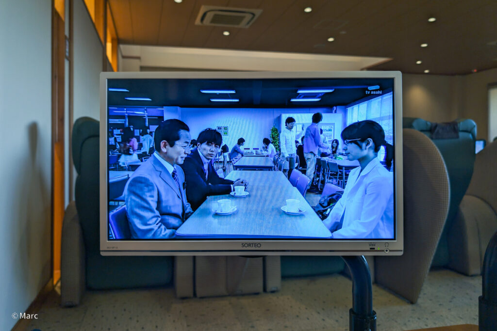 リクライニングルームの各シートには液晶テレビが備わっており、スピーカーもヘッドレスト部分に内蔵されています。