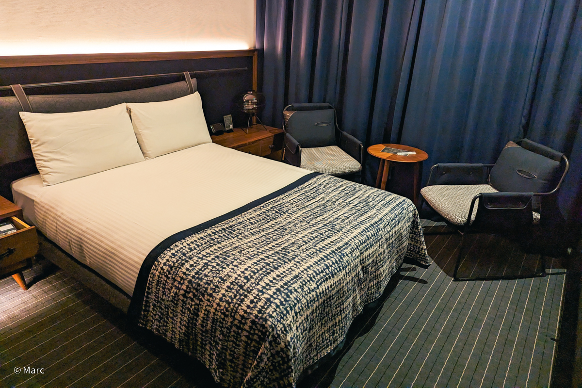 今回は「シアターダブルルーム」に宿泊しました。インテリアのコンセプトがバッチリ決まったおしゃれな客室です。