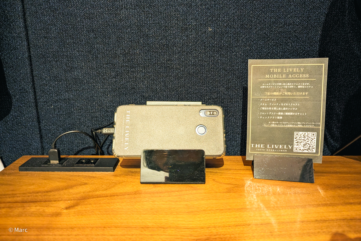 その他のルームサービスや貸出備品は、ベッド横のスマホから注文が可能です。
